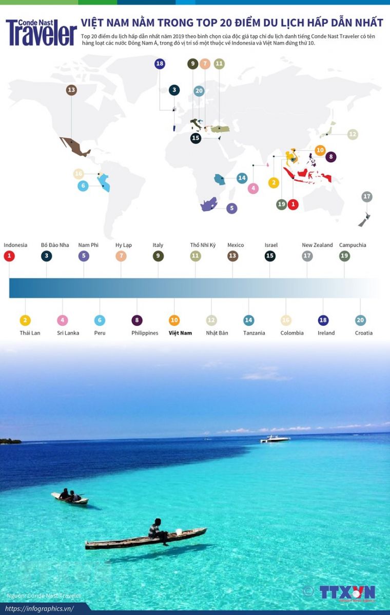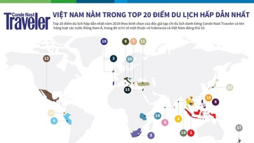 [Infographics] Việt Nam nằm trong top 20 điểm du lịch hấp dẫn nhất