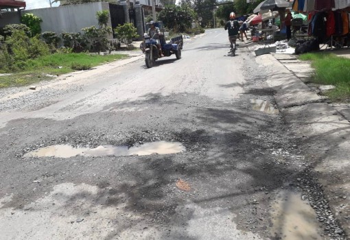 “Ổ gà” giữa đường, gây mất an toàn cho người tham gia giao thông