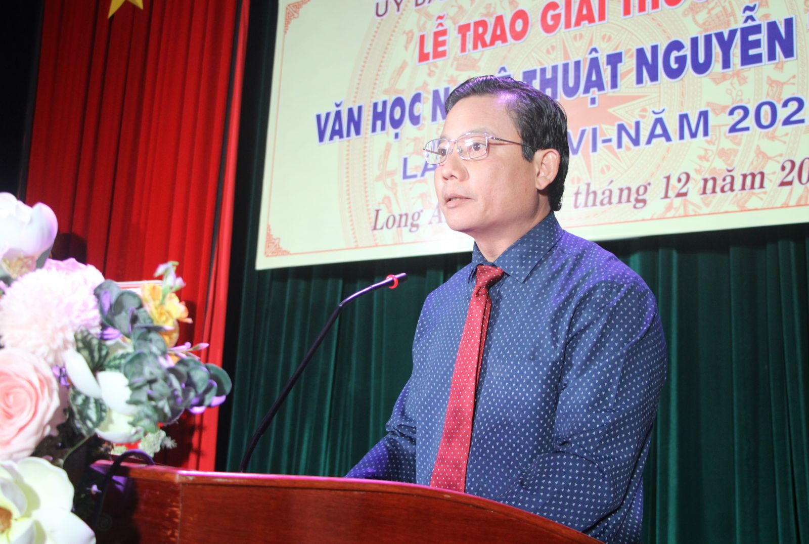 Chiều 27/12, UBND tỉnh Long An tổ chức Lễ trao giải thưởng Văn học nghệ thuật (VHNT) Nguyễn Thông lần thứ VI năm 2022. Đến dự có Phó Bí thư Thường trực Tỉnh ủy, Trưởng đoàn đại biểu Quốc hội tỉnh - Nguyễn Thanh Hải; Ủy viên Ban Thường vụ, Trưởng ban Tuyên giáo Tỉnh ủy - Hoàng Đình Cán; Phó Chủ tịch UBND tỉnh - Phạm Tấn Hòa.