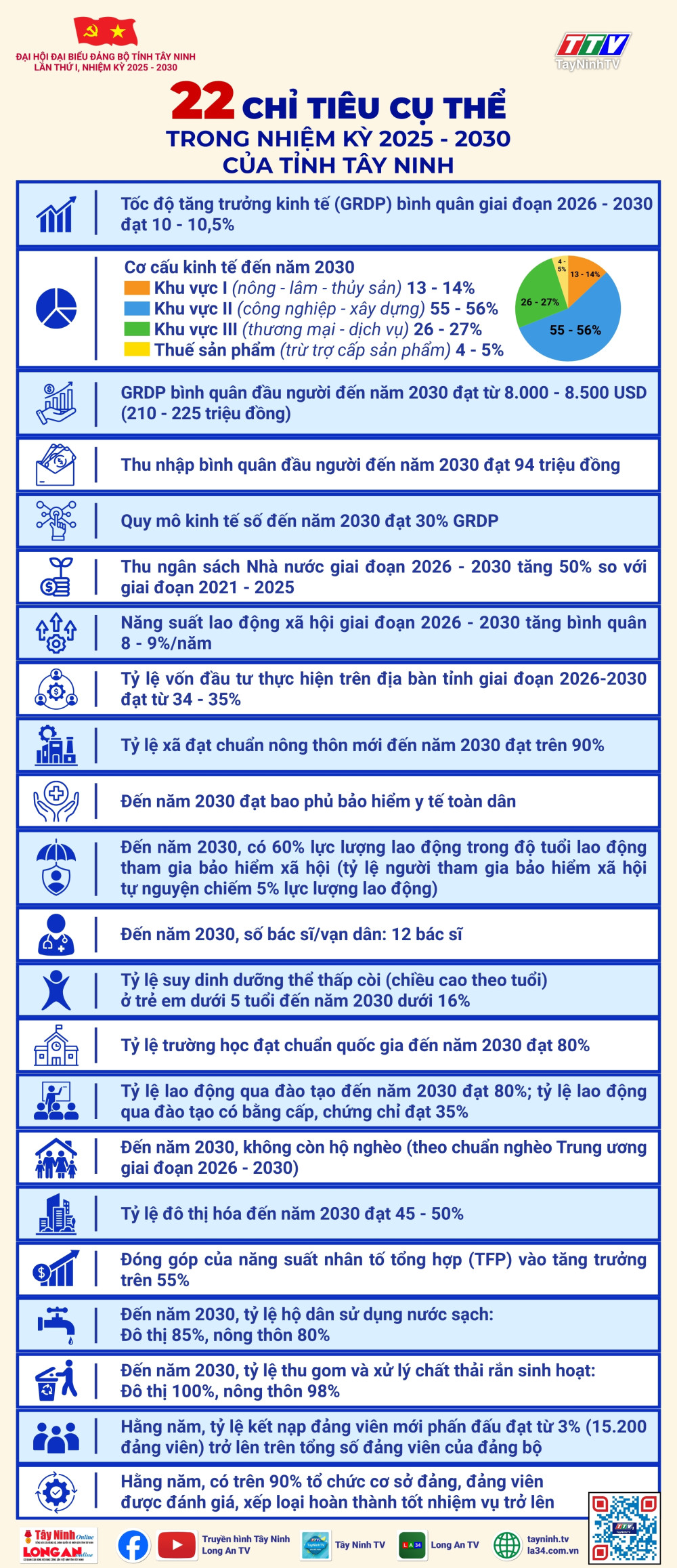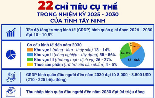 22 chỉ tiêu trong nhiệm kỳ 2025-2030 của tỉnh Tây Ninh