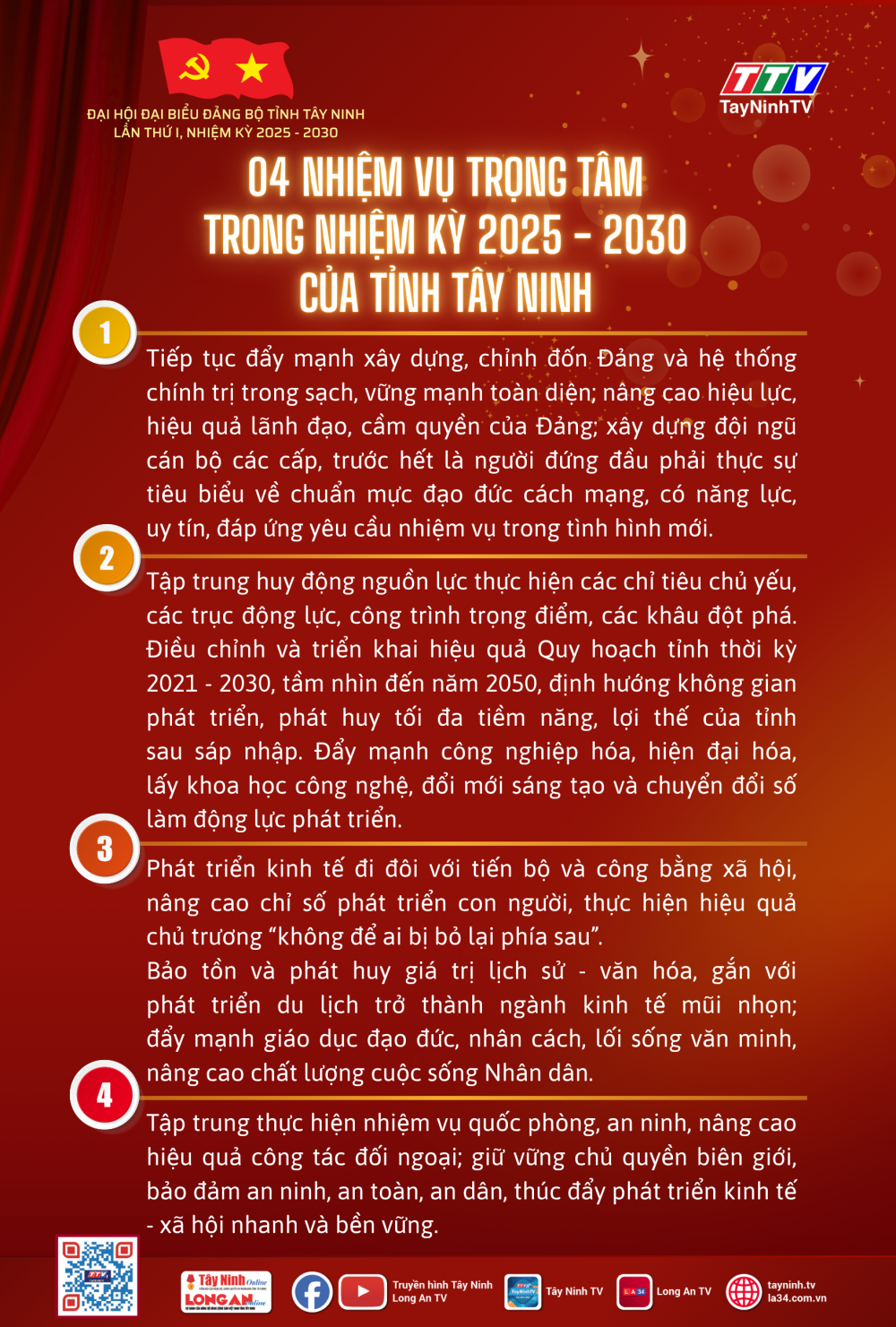 4 nhiệm vụ trọng tâm trong nhiệm kỳ 2025-2030 của tỉnh Tây Ninh