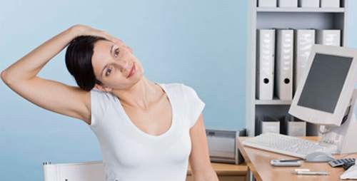 Phần sau của cổ - gáy bị cứng lại, nạn nhân đầu tiên của việc ngồi yên một chỗ. Ngồi vào bàn làm việc, hít vào bằng mũi, chặn hơi thở bằng cách nhẹ nhàng gật đầu như muốn nói "có". Sau đó thở ra bằng miệng trong khi đưa đầu thẳng.