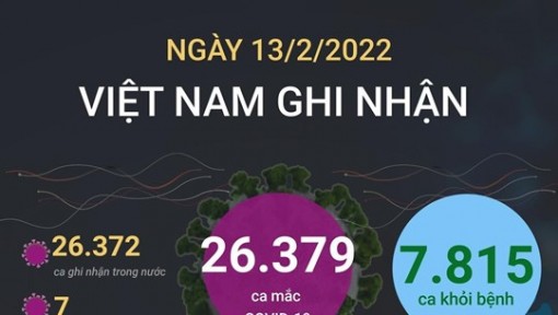 Ngày 13/2, Việt Nam ghi nhận 26.379 ca mắc mới COVID-19, trong khi số bệnh nhân COVID-19 được công bố khỏi bệnh trong ngày là 7.815 ca.