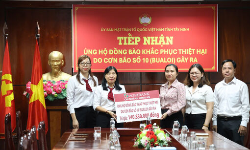 Agribank Chi nhánh Long An ủng hộ hơn 140 triệu đồng hỗ trợ đồng bào khắc phục hậu quả bão, lũ