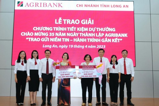 Ngày 19/4, Agribank Chi nhánh tỉnh Long An tổ chức Lễ trao giải chương trình tiết kiệm dự thưởng “Trao gửi niềm tin - Hành trình gắn kết”.