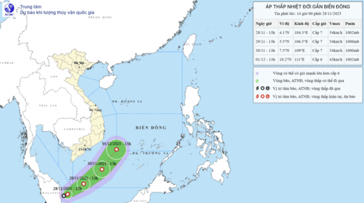 Hiện nay (28/11), áp thấp nhiệt đới đang hoạt động trên vùng ven biển phía đông Malaysia đang tiếp tục mạnh lên và di chuyển về hướng Biển Đông.