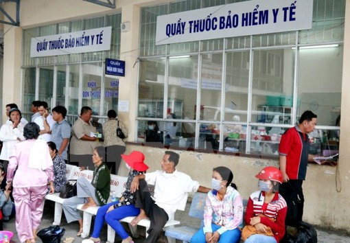 Người dân chờ xếp hàng mua thuốc. (Ảnh: TTXVN/Vietnam+)