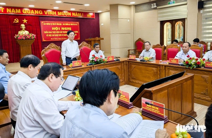 Ban Thường vụ hai Tỉnh ủy Gia Lai và Bình Định làm việc về đề án sáp nhập tỉnh - Ảnh: TẤN LỰC