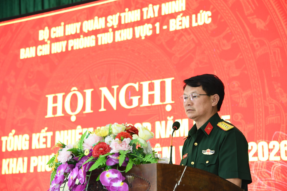 Ngày 19/11, Ban Chỉ huy Phòng thủ khu vực (PTKV) 1 – Bến Lức, Bộ Chỉ huy Quân sự (CHQS) tỉnh Tây Ninh tổ chức Hội nghị tổng kết nhiệm vụ quân sự, quốc phòng năm 2025 và triển khai phương hướng, nhiệm vụ năm 2026.