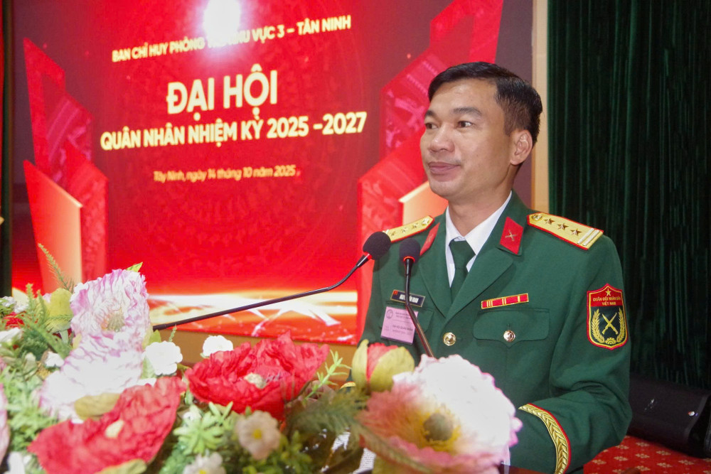 Sáng 14/10, Ban Chỉ huy Phòng thủ khu vực 3 – Tân Ninh tổ chức Đại hội Quân nhân nhiệm kỳ 2025-2027. Thượng tá Nguyễn Văn Hoan – Phó Chính ủy Ban Chỉ huy Phòng thủ khu vực 3 - Tân Ninh dự vào chỉ đạo đại hội.
