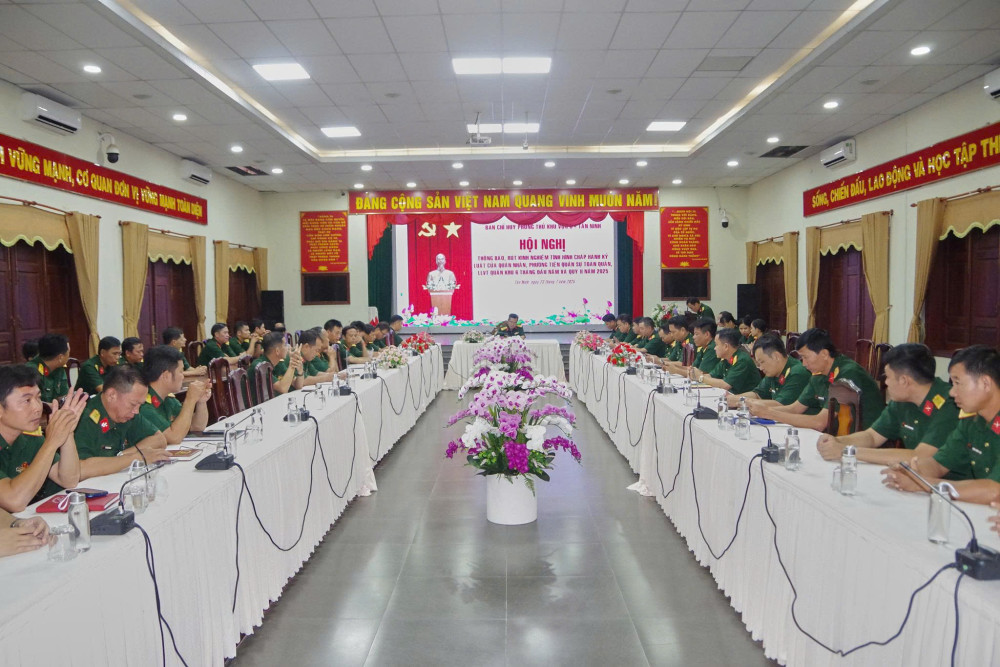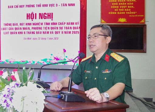 Chiều 23/7, Ban Chỉ huy phòng thủ khu vực 3 - Tân Ninh (tỉnh Tây Ninh) tổ chức Hội nghị thông báo, rút kinh nghiệm tình hình chấp hành kỷ luật của quân nhân, phương tiện quân sự toàn quân 6 tháng đầu năm 2025. Trung tá Đặng Thành Nam, Phó Chỉ huy trưởng Ban Chỉ huy phòng thủ khu vực 3 – Tân Ninh chủ trì hội nghị.