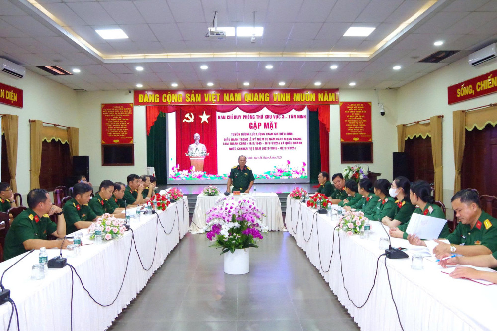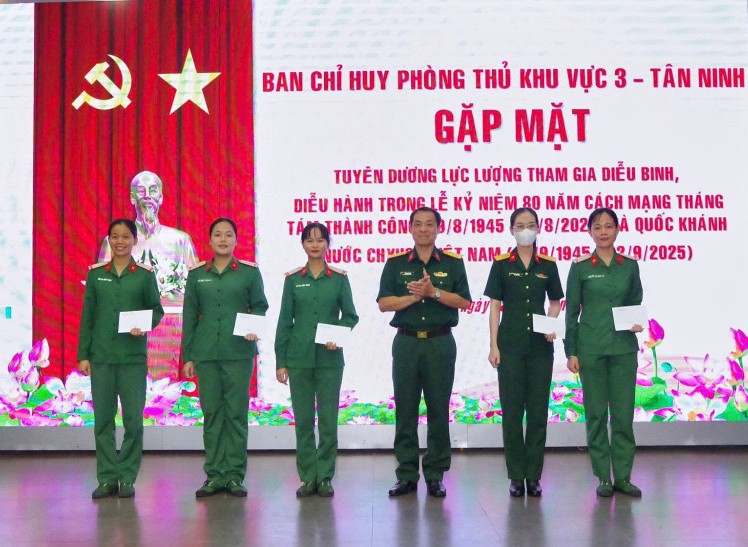 Sáng 08/9, Ban Chỉ huy Phòng thủ khu vực 3 – Tân Ninh tổ chức gặp mặt, tuyên dương lực lượng cán bộ, chiến sĩ tham gia nhiệm vụ diễu binh, diễu hành kỷ niệm 80 năm Cách mạng Tháng Tám (19/8/1945 - 19/8/2025) và Quốc khánh (02/9/1945 - 02/9/2025). Thượng tá Võ Văn Thọ - Chỉ huy trưởng Ban Chỉ huy Phòng thủ khu vực 3 – Tân Ninh chủ trì buổi gặp mặt.