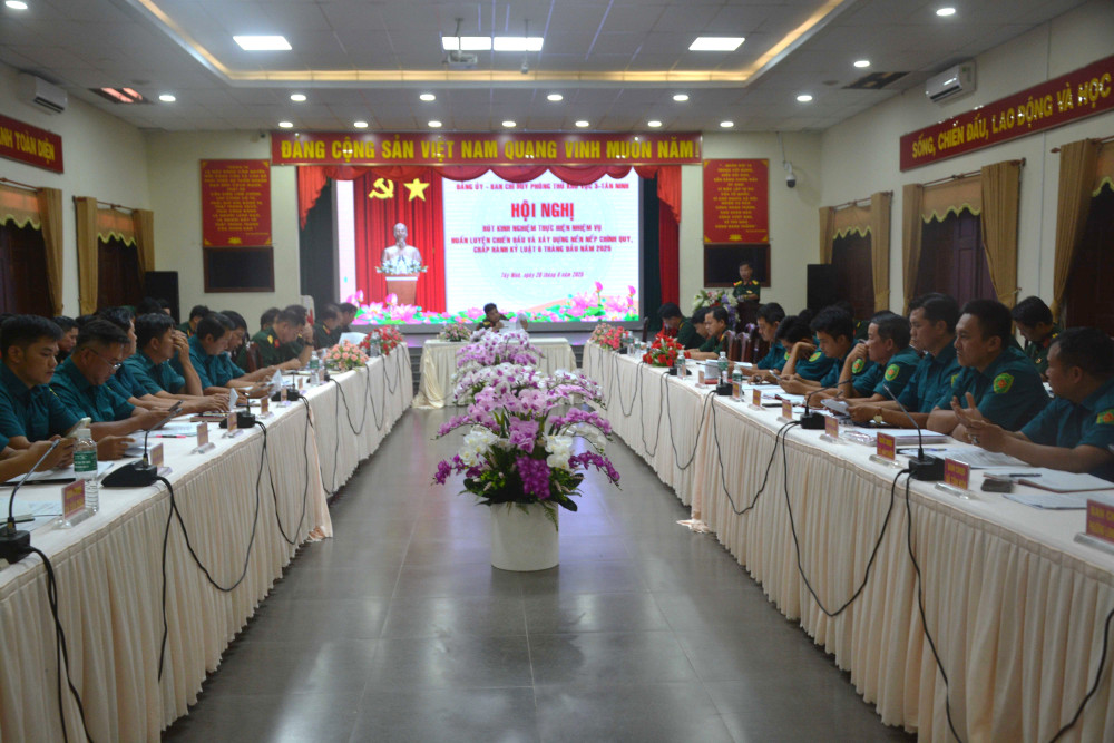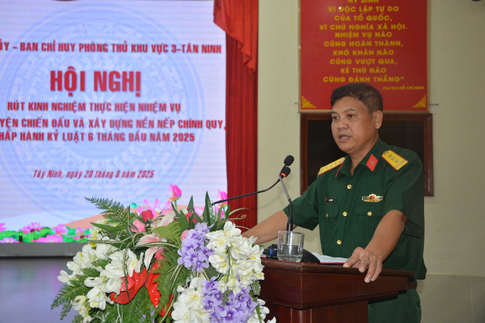 Chiều 20/8, Đảng ủy, Ban Chỉ huy Phòng thủ khu vực 3 – Tân Ninh tổ chức hội nghị sơ kết thực hiện nhiệm vụ huấn luyện chiến đấu và xây dựng nền nếp chính quy, chấp hành kỷ luật 6 tháng đầu năm, phương hướng nhiệm vụ 6 tháng cuối năm 2025. Thượng tá Huỳnh Tấn Em - Phó Chỉ huy trưởng, Tham mưu trưởng Ban Chỉ huy Phòng thủ khu vực 3 chủ trì hội nghị.