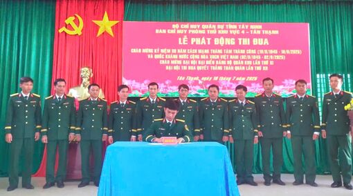Ngày 10/7, Ban Chỉ huy Phòng thủ khu vực 4 (PTKV4) – Tân Thạnh, Bộ Chỉ huy Quân sự (CHQS) tỉnh Tây Ninh tổ chức Lễ phát động phong trào thi đua cao điểm với chủ đề “Phất cao cờ hồng tháng Tám – Thi đua giành 3 nhất”.