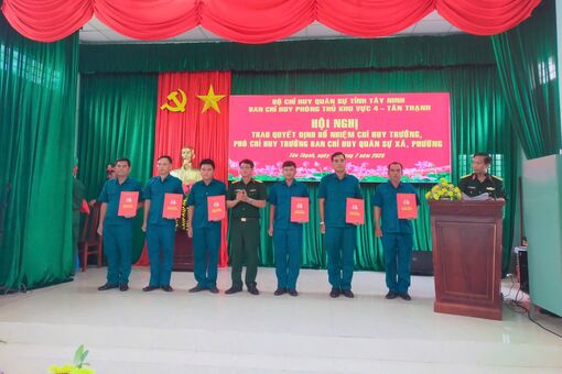 Ban Chỉ huy Phòng thủ Khu vực 4 - Tân Thạnh trao quyết định bổ nhiệm lãnh đạo Ban Chỉ huy Quân sự cấp xã