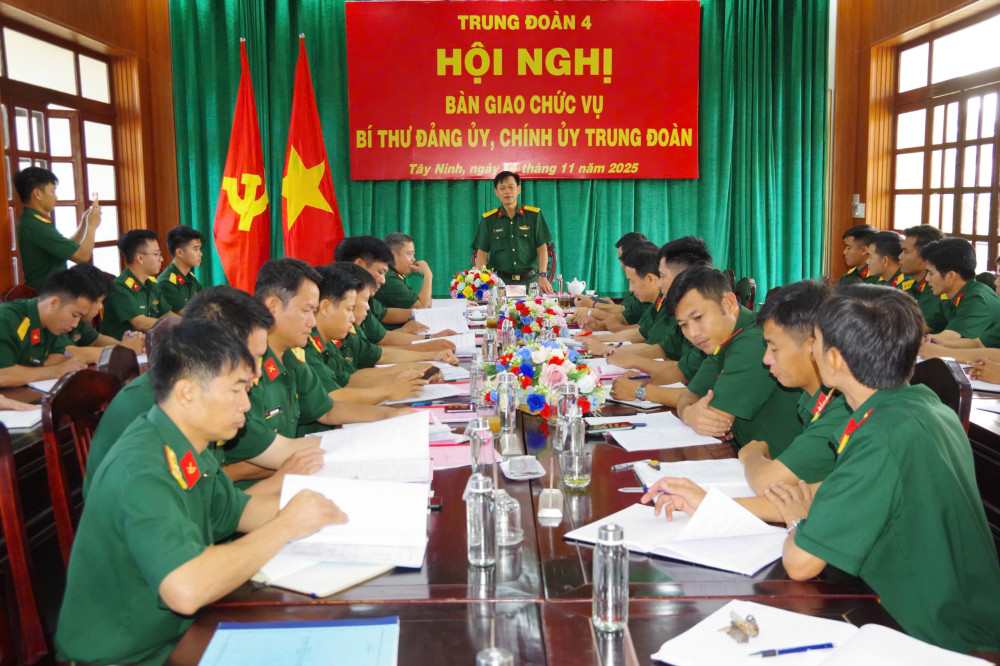 Ngày 14/11, Đảng ủy - Chỉ huy Trung đoàn 4 (Sư đoàn 5, đứng chân trên địa bàn tỉnh Tây Ninh) tổ chức Hội nghị bàn giao chức vụ Bí thư Đảng ủy, Chính ủy Trung đoàn. Đại tá Trần Hoàng Giang - Bí thư Đảng ủy, Chính ủy Sư đoàn 5, chủ trì hội nghị.