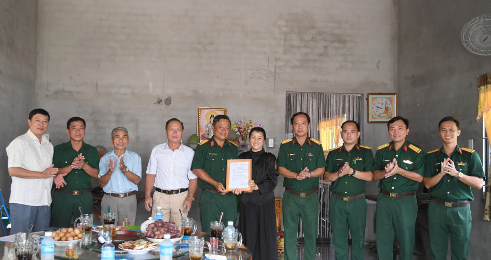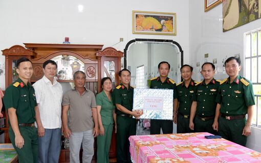 Bộ Chỉ huy Quân sự tỉnh trao quyết định tặng nhà đồng đội cho Trung tá Lê Văn Hiếu - nguyên Trợ lý binh chủng Ban Chỉ huy Quân sự huyện Vĩnh Hưng (tỉnh Long An cũ).jpg) Đại tá Nguyễn Đình Phương - Chủ nhiệm Chính trị Bộ Chỉ huy Quân sự tỉnh và đồng đội tặng quà cho gia đình Đại úy Nguyễn Vũ Linh