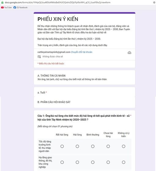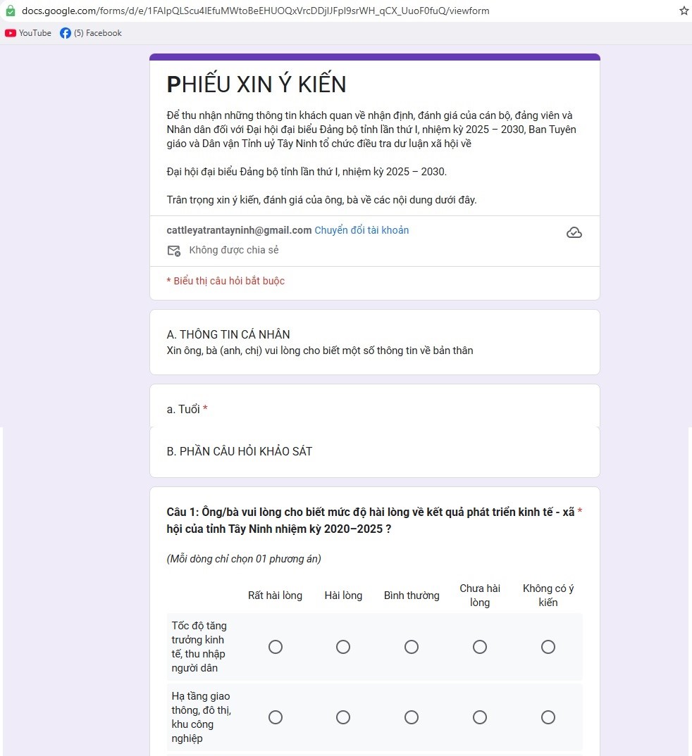 Nhằm khảo sát dư luận xã hội trong cán bộ, đảng viên, đoàn viên, hội viên, Nhân dân về Đại hội đại biểu Đảng bộ tỉnh lần thứ I, nhiệm kỳ 2025-2030, từ ngày 08 đến ngày 13/10/2025, Ban Tuyên giáo và Dân vận Tỉnh ủy tổ chức điều tra dư luận xã hội về Đại hội đại biểu Đảng bộ tỉnh Tây Ninh lần thứ I, nhiệm kỳ 2025-2030.
