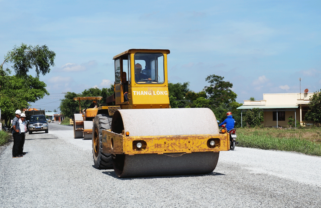 Đường tỉnh 826B đoạn thuộc gói thầu của Công ty TNHH Xây dựng và Dịch vụ Thăng Long dự kiến hoàn thành trước 12/6/2017, sớm hơn kế hoạch gần 6 tháng