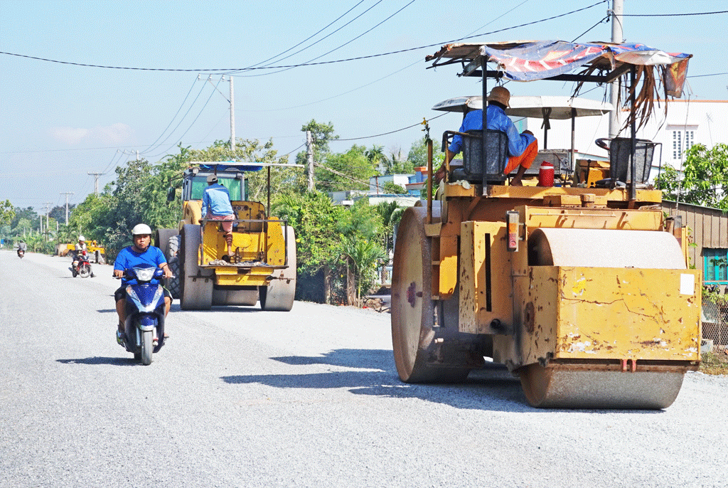 Đường tỉnh 830 (đoạn qua xã Long Định, huyện Cần Đước) đang được đẩy nhanh tiến độ thi công