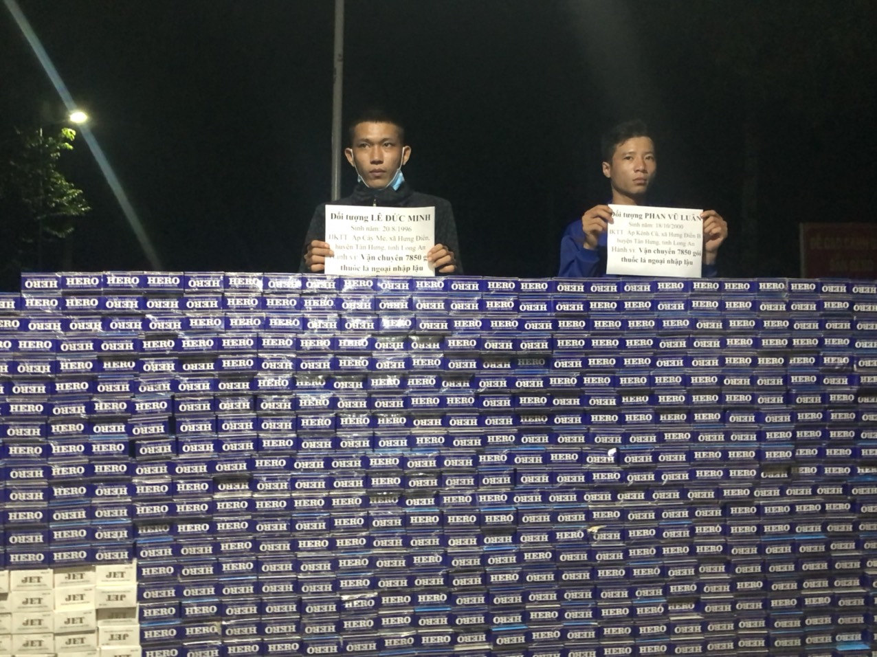 Lực lượng Bộ đội Biên phòng tỉnh Long An tổ chức mật phục phát hiện, bắt giữ 2 đối tượng đang vận chuyển gần 8.000 gói thuốc lá ngoại nhập lậu vào biên giới.