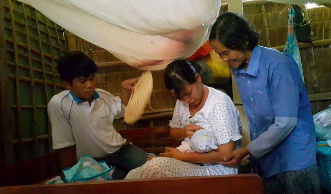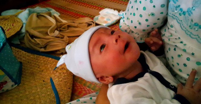 Trưa 28-8, bé Dương Minh Phát (bị một phụ nữ dùng dao đâm thấu sọ khi mới 12 ngày tuổi tại BV Đa khoa Vĩnh Long) xuất viện về nhà trong niềm vui vỡ òa của người thân