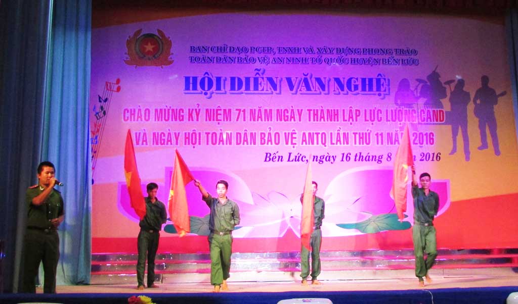Nhân kỷ niệm 71 Ngày thành lập Công an nhân dân (CAND) Việt Nam và 11 năm Ngày hội Toàn dân bảo vệ an ninh Tổ quốc, ngày 16/8, Công an huyện Bến Lức, tỉnh Long An tổ chức hội diễn văn nghệ chào mừng với chủ đề “Vì nước quên thân, vì dân phục vụ”.