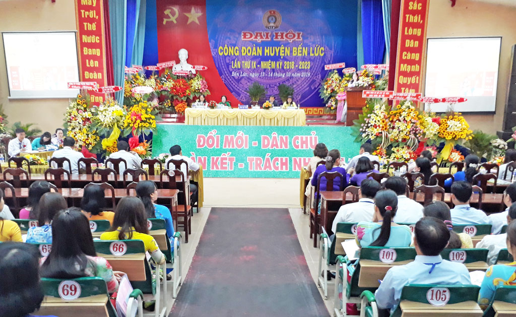 Sáng 13/3, Liên đoàn Lao động huyện Bến Lức, tỉnh Long An khai mạc Đại hội Công đoàn lần thứ IX, nhiệm kỳ 2018 - 2023.
