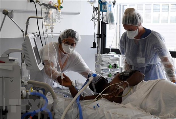Nhân viên y tế điều trị cho bệnh nhân COVID-19 tại bệnh viện ở Fort-de-France thuộc đảo Martinique của Pháp ngày 1/12/2021. (Ảnh: AFP/TTXVN)