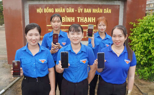 Đoàn Thanh niên xã Bình Thạnh thường xuyên ra quân tuyên truyền, vận động người dân tải và sử dụng VNeID (Ảnh: Phú Vinh)