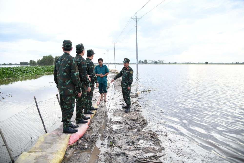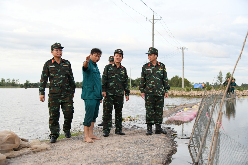 Ngay sau khi sự cố vỡ đê xảy ra trên địa bàn xã Hưng Điền, tỉnh Tây Ninh, ngày 20/10, Đại tá Nguyễn Đình Huân - Phó Chỉ huy trưởng Bộ Chỉ huy Quân sự tỉnh, đến kiểm tra công tác khắc phục hậu quả.