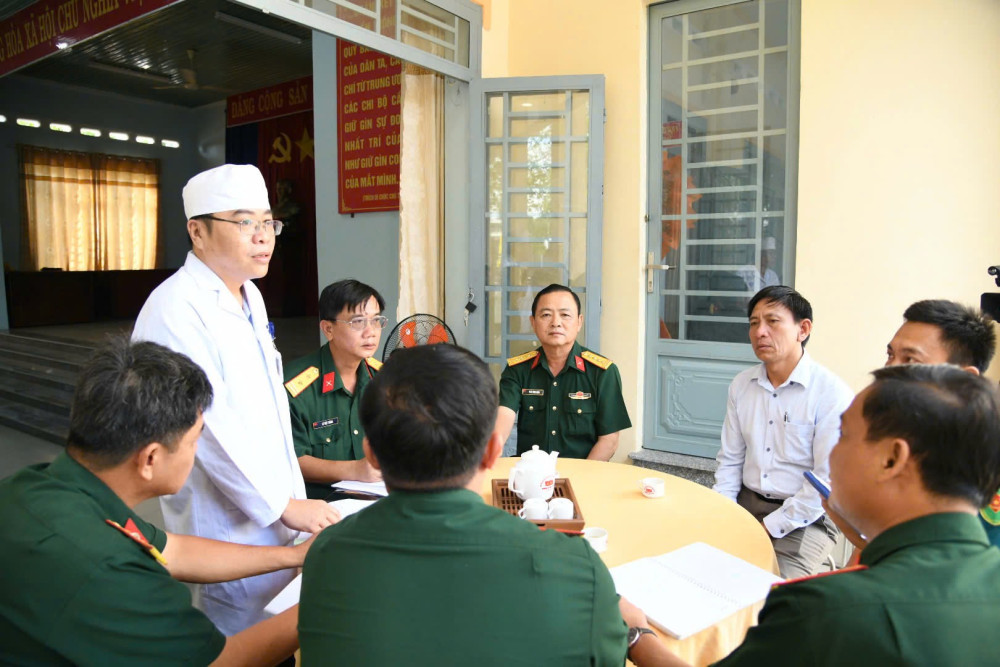 Đoàn công tác nghe báo cáo công tác khám sơ tuyển sức khỏe tại xã Trà Vong