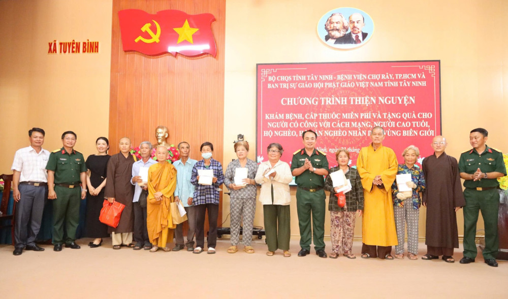 Ngày 23/8, tại xã Khánh Hưng và xã Tuyên Bình (tỉnh Tây Ninh), Bộ Chỉ huy Quân sự (CHQS) tỉnh phối hợp Bệnh viện Chợ Rẫy (TP.HCM) và Ban Trị sự Giáo hội Phật giáo Việt Nam tỉnh Tây Ninh tổ chức chương trình thiện nguyện khám bệnh, cấp thuốc miễn phí và trao quà cho người có công với cách mạng, người cao tuổi, hộ nghèo, cận nghèo và bà con nhân dân khu vực biên giới.