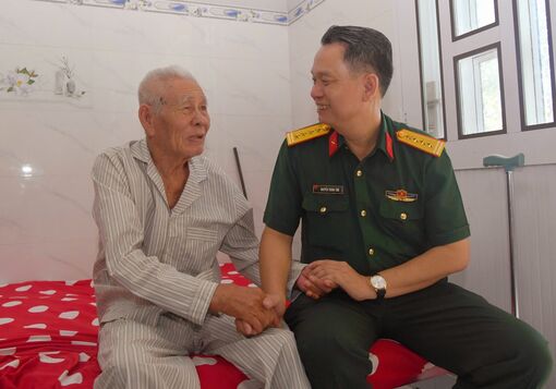 Đại tá Nguyễn Thành Tâm - Chỉ huy trưởng Bộ Chỉ huy Quân sự tỉnh, thăm hỏi, động viên ông Nguyễn Văn Nhựt, thương binh hạng 1/4, ở xã Khánh Hưng, tỉnh Tây Ninh