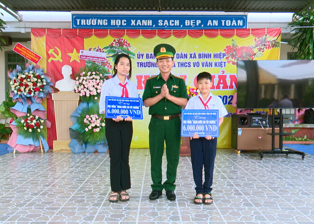 Ngày 05/9, Đoàn công tác Ban Chỉ huy Bộ đội Biên phòng (BĐBP) tỉnh Tây Ninh tổ chức trao học bổng “Nâng bước em tới trường” cho các em học sinh nhân dịp khai giảng năm học mới 2025-2026.