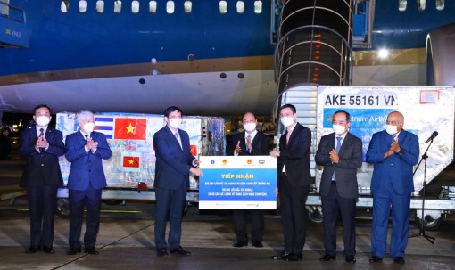 Tối 25/9, trước sự chứng kiến của Chủ tịch nước Nguyễn Xuân Phúc, 1,05 triệu liều vaccine COVID-19 Abdala của Cuba đã được bàn giao cho Bộ Y tế và Bộ Quốc phòng. GS.TS Nguyễn Thanh Long- Bộ trưởng Bộ Y tế đại diện tiếp nhận lô vaccine này.