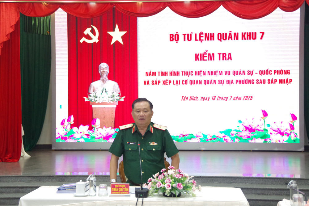 Sáng 16/7, Đoàn công tác Bộ Tư lệnh Quân khu 7 do Thiếu tướng Trần Chí Tâm - Phó Chính ủy Quân khu làm trưởng đoàn đến kiểm tra, nắm tình hình thực hiện nhiệm vụ quân sự - quốc phòng địa phương và sắp xếp lại cơ quan quân sự địa phương sau sáp nhập đối với Ban Chỉ huy phòng thủ khu vực 3 – Tân Ninh.