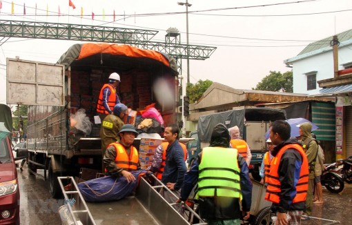 Đưa hàng hóa cứu trợ đến với người dân vùng lũ. (Ảnh: Văn Tý/TTXVN)
