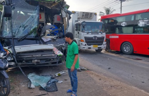 Va chạm liên hoàn giữa 3 xe tải và 1 xe máy khiến 1 người tử vong