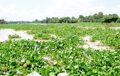 Lục bình trên sông Vàm Cỏ Tây vẫn là vấn nạn ảnh hưởng đến sản xuất tại một số xã của huyện Thạnh Hóa và huyện Mộc Hóa