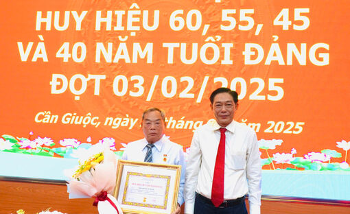 Cần Giuộc: 24 đảng viên được trao tặng Huy hiệu Đảng đợt 03/02