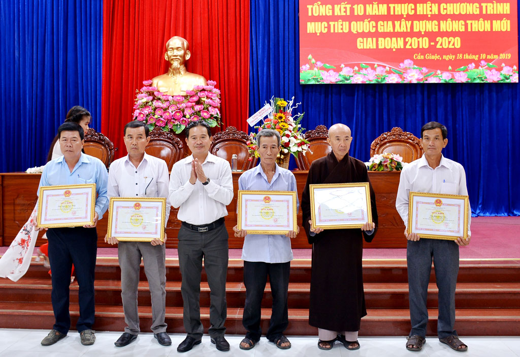 Chủ tịch UBND huyện Cần Giuộc - Nguyễn Tuấn Thanh tặng giấy khen cho các tập thể, cá nhân có thành tích xuất sắc trong xây dựng nông thôn mới