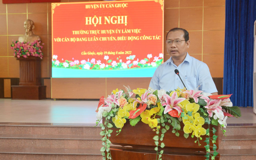 Chiều 19/8, Huyện ủy Cần Giuộc, tỉnh Long An tổ chức họp mặt cán bộ điều động, luân chuyển trên địa bàn huyện.
