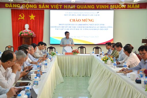 Chiều 07/5, Đoàn giám sát của HĐND tỉnh Long An do Phó Chủ tịch Thường trực HĐND tỉnh – Mai Văn Nhiều làm Trưởng đoàn thực hiện giám sát chuyên đề chấp hành pháp luật trong công tác lập và quản lý đầu tư công giai đoạn 2021-2025 tại Sở Văn hóa, Thể thao và Du lịch (VHTT&DL).
