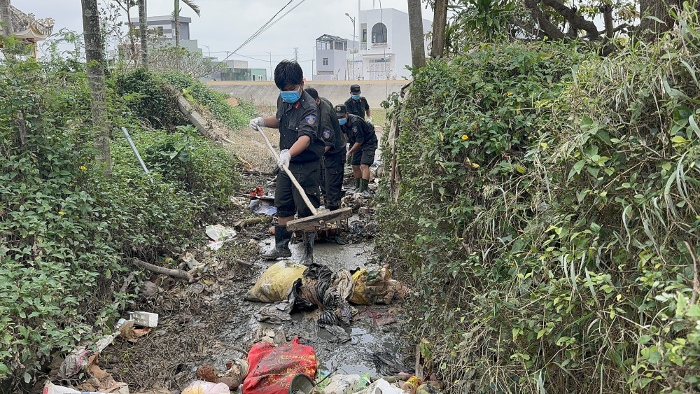 Cán bộ, chiến sĩ hỗ trợ dọn dẹp một số tuyến đường