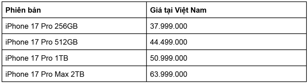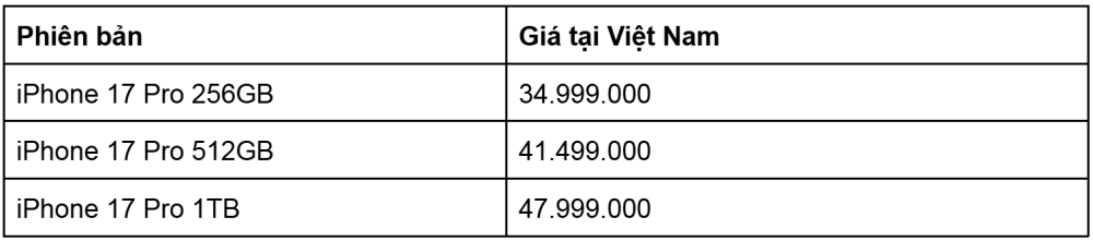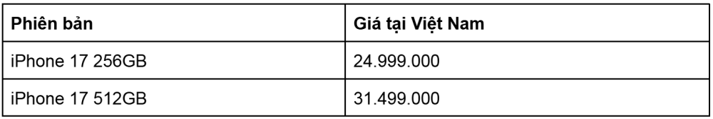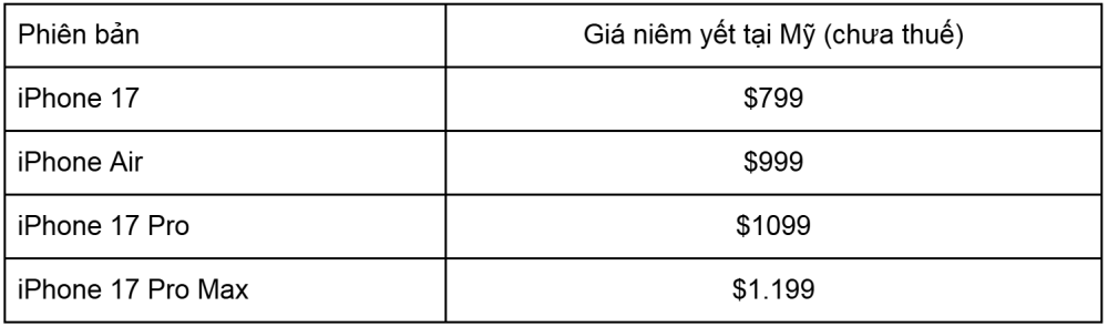 Cập nhật bảng giá iPhone 17 Series niêm yết mới 2025