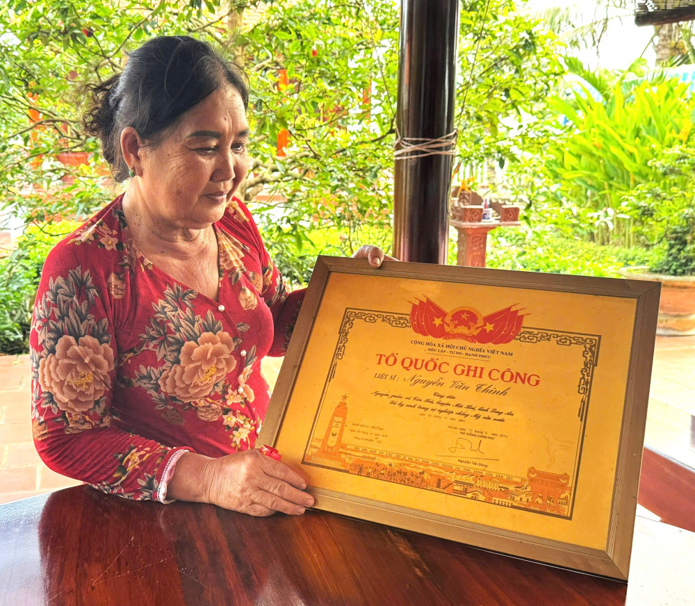 Với bà Cam, bằng Tổ quốc ghi công của cha và bằng công nhận danh hiệu Bà mẹ Việt Nam Anh hùng của bà nội là kỷ vật vô giá. "Mỗi dịp lễ, tết, chính quyền, đoàn thể xã đều đến thăm hỏi, hỗ trợ gia đình cả về vật chất lẫn tinh thần. Dù cha và bà nội tôi không còn nhưng chưa bao giờ bị lãng quên. Cảm ơn Nhà nước, cảm ơn chính quyền địa phương luôn nhớ đến công lao của gia đình tôi” - bà Cam bày tỏ.