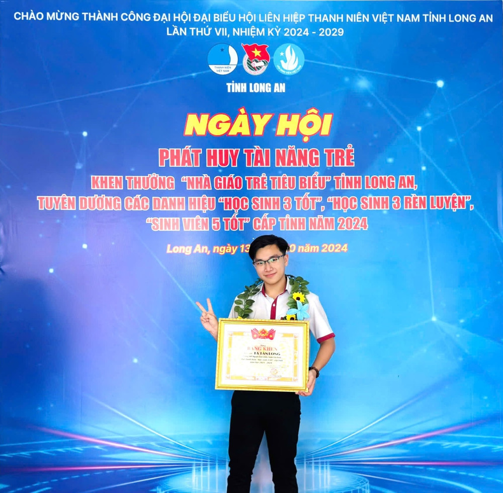 Tạ Tấn Long (học sinh (HS) lớp 12A4, Trường THPT Nguyễn Đình Chiểu, huyện Cần Giuộc, tỉnh Long An) là cậu học trò chăm ngoan, học giỏi, được thầy cô và bạn bè yêu mến. Tấn Long là niềm tự hào của gia đình và nhà trường khi đoạt giải Ba Kỳ thi HS giỏi môn Hóa trên máy tính cầm tay cấp tỉnh năm 2024.