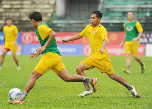 Câu lạc bộ Long An tập luyện dưới mưa, sẵn sàng tiếp TP.HCM trên sân nhà