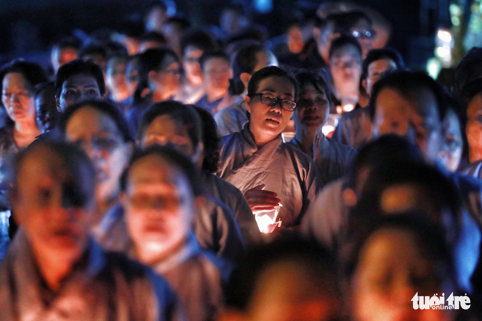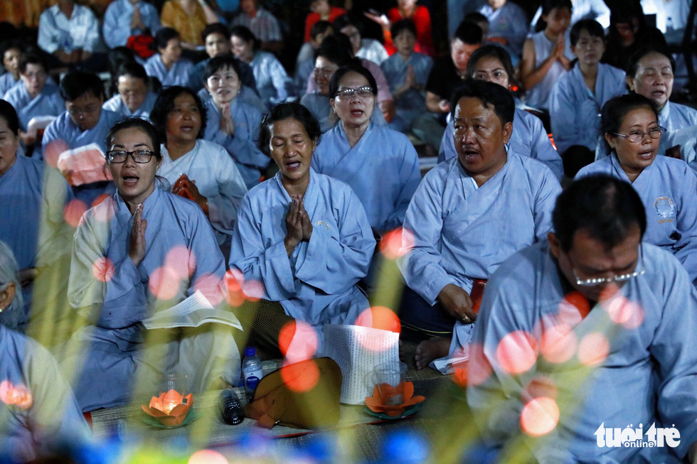 Rất đông phật tử tham gia buổi cầu siêu - Ảnh: HỮU KHOA